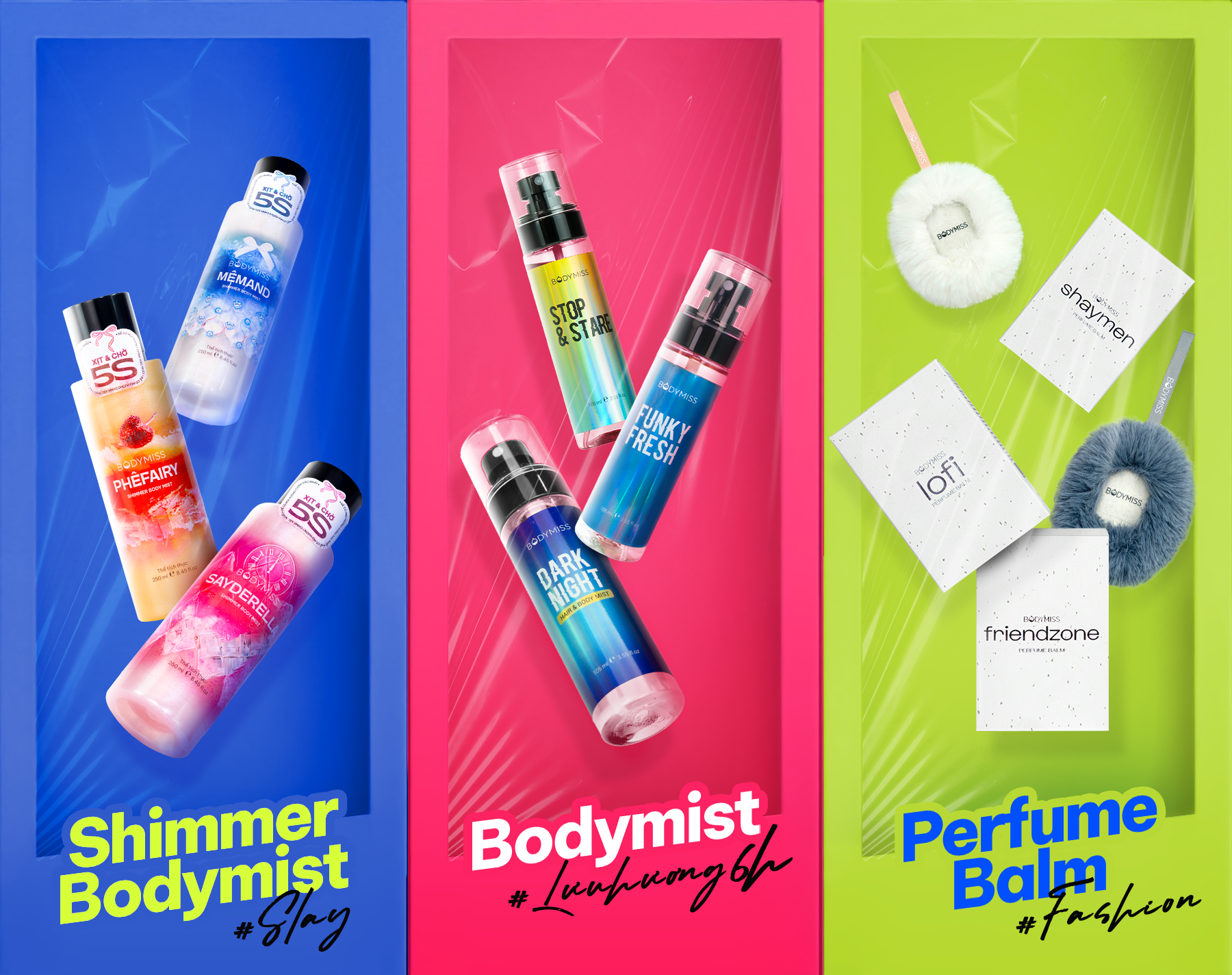 COMBO 199K: Bodymist Nhũ Xịt Thơm Lấp Lánh Toàn Thân BODYMISS Hương Nước Hoa MêMand + Sayderella 250ml