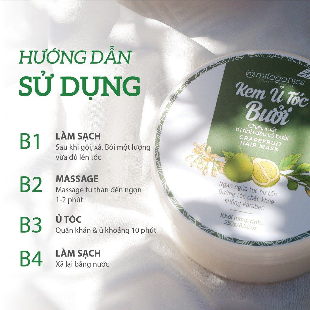 - Sử dụng kết hợp với Dầu gội Bưởi, Dầu xả Bưởi Milaganics, Serum Bưởi, Tinh Dầu Bưởi Milaganics để đạt tối đa hiệu quả sử dụng.