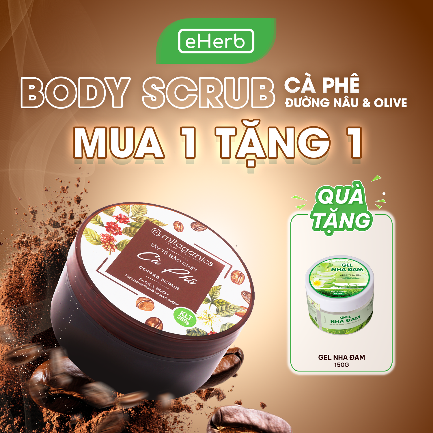 Scrub tẩy tế bào chết cà phê Milaganics loại bỏ nhẹ nhàng lớp tế bào chết trên da, đồng thời kích thích sản sinh các tế bào mới nhờ bột cà phê hạt mịn Robusta và đường nâu. Sự kết hợp với các thành phần an toàn, có nguồn gốc 100% từ thiên nhiên như dầu Olive, dầu Cám Gạo, Mật Ong, nước Nha đam cùng Vitamin E, Glycerin giúp dưỡng ẩm và làm da trở nên sáng màu, giảm thâm sạm.