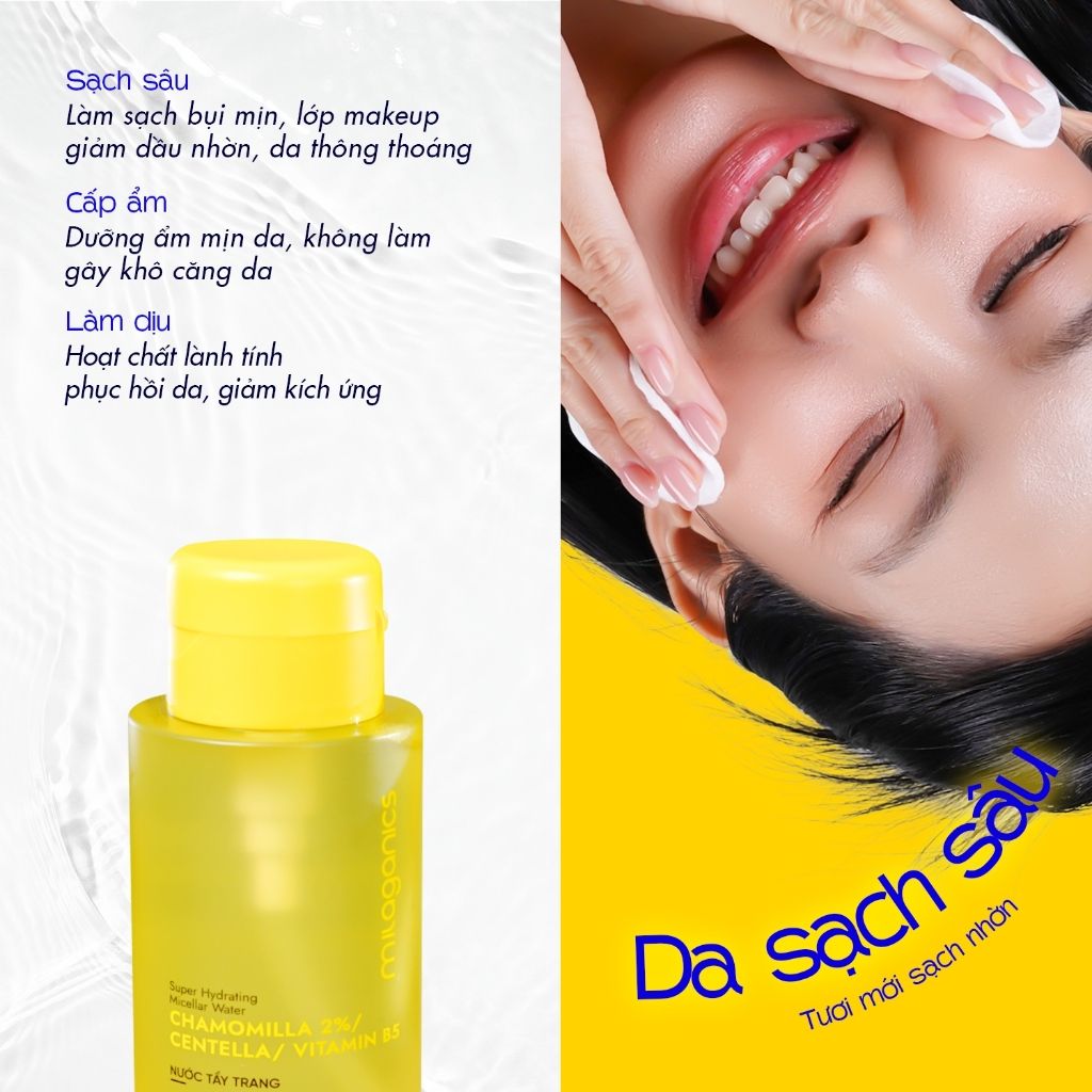 [MUA 1 TẶNG 1] Tẩy trang hoa cúc dịu da giảm mụn, tẩy trang dịu nhẹ cho da nhạy cảm MILAGANICS 300ml
