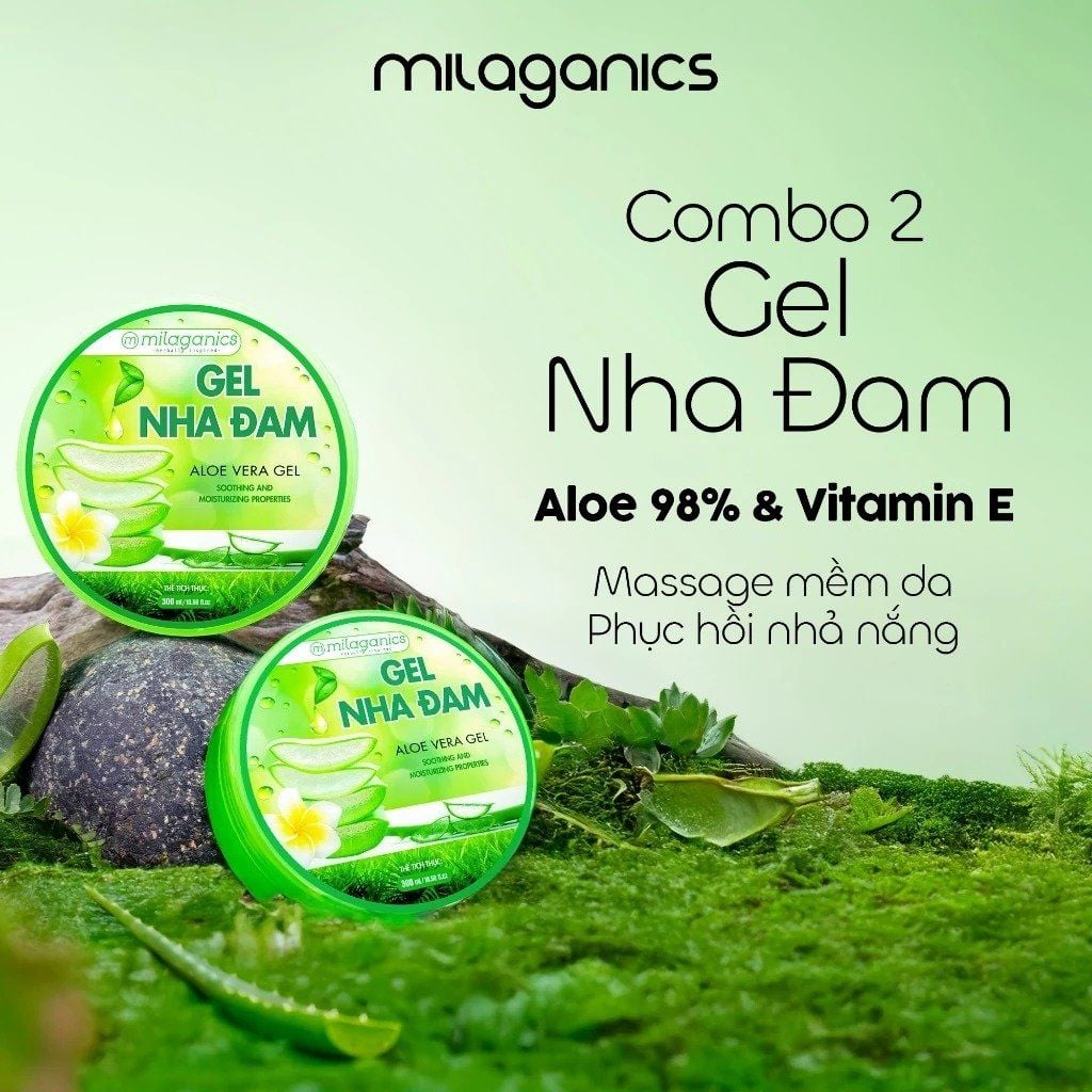 Gel Nha Đam Milaganics với thành phần là 98% tinh chất nha đam hoàn toàn tự nhiên, được bổ sung thêm các hoạt chất dưỡng da lành tính.