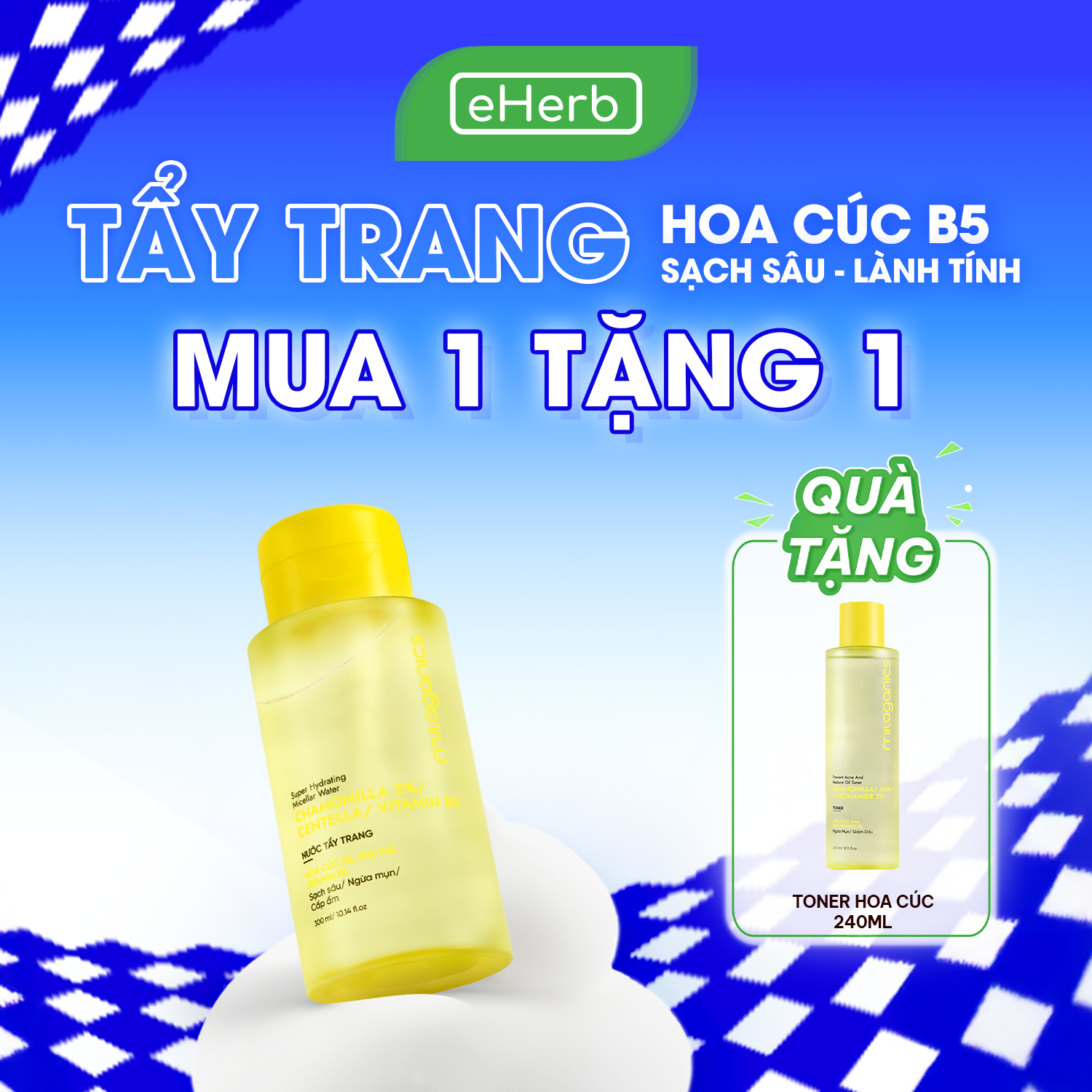 [MUA 1 TẶNG 1] Tẩy Trang Hoa Cúc MILAGANICS Hỗ Trợ Giảm Mụn, Tẩy Sạch Da Dầu và Cấp Ẩm Nhẹ Nhàng Size 300ml